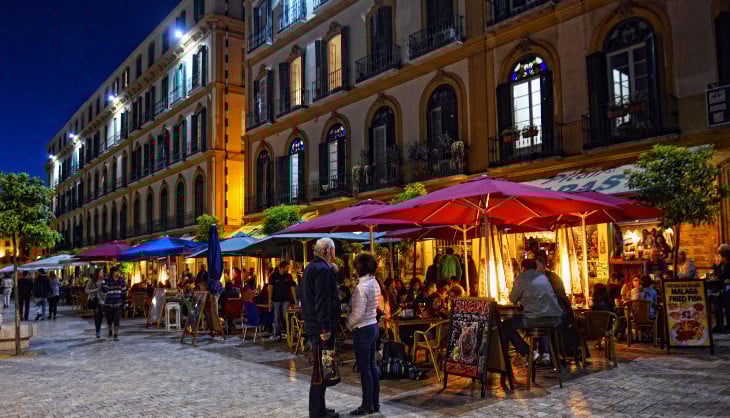 Tagsüber und auch nachts. Im Sommer ebenso wie im Winter. Die Plaza de la Merced bietet dank der Bars, Pubs und Cafés, die rundherum zu finden sind immer ein belebtes Ambiente mit jungen Leuten. Bei den meisten Lokalen kann man draußen sitzen und an der angenehmen Sonne Málagas ein Bier oder einen Kaffee genießen.