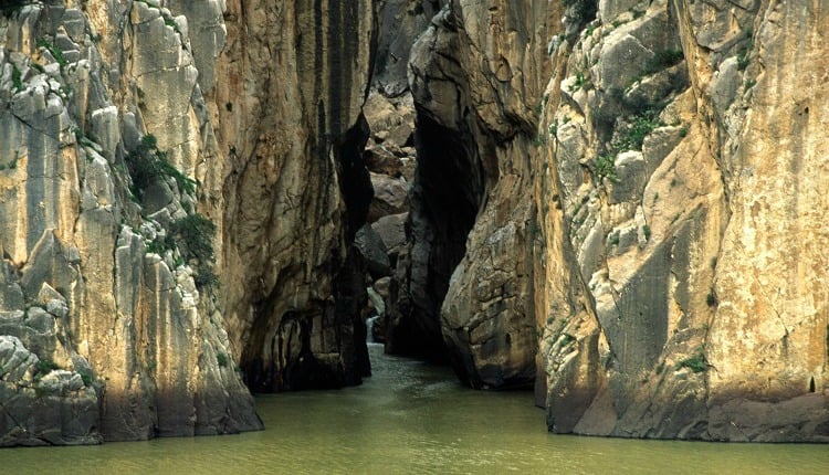 This spectacular setting is also known as El Chorro and it is located between the towns of Álora, Antequera and Ardales. It is over 5 kilometres long and its entire length is spanned by a combination of wider open spaces and other parts where it becomes a very narrow passage, where a single person only just gets through on foot and where the riverbed runs between rock walls that are almost 400 metres high.