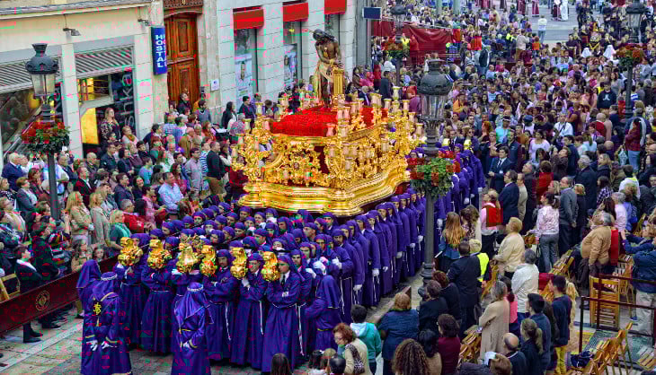 La Semana Santa de Málaga no es como cualquier otra. Hay diferencias notables que la hacen especial. En primer lugar, es una celebración religiosa con menos recogimiento que en otras ciudades. En segundo lugar, las procesiones en Málaga son un auténtico espectáculo para los sentidos. Los enormes tronos (que así se llaman, no confundir nunca con los pasos de otras provincias andaluzas) llevan las imágenes que son mecidas durante el recorrido por los hombres de trono, acompañados por miles de nazarenos y penitentes con sus cirios, marchas procesionales, aromas de incienso y flores.