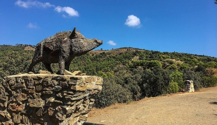 Este trilho para caminhada começa no Miradouro del Cochino. Partindo de Málaga, poderá aceder a este ponto pela estrada A-7000 (ao quilómetro 547). É um lugar inconfundível, graças à escultura de um porco, bem como às deslumbrantes panorâmicas que oferece sobre a cidade e as paisagens que a ladeiam.